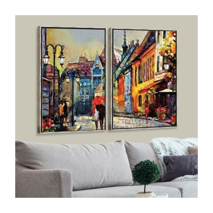 Kit 2 Telas Canvas com Moldura Europa Metalizado - Grande -