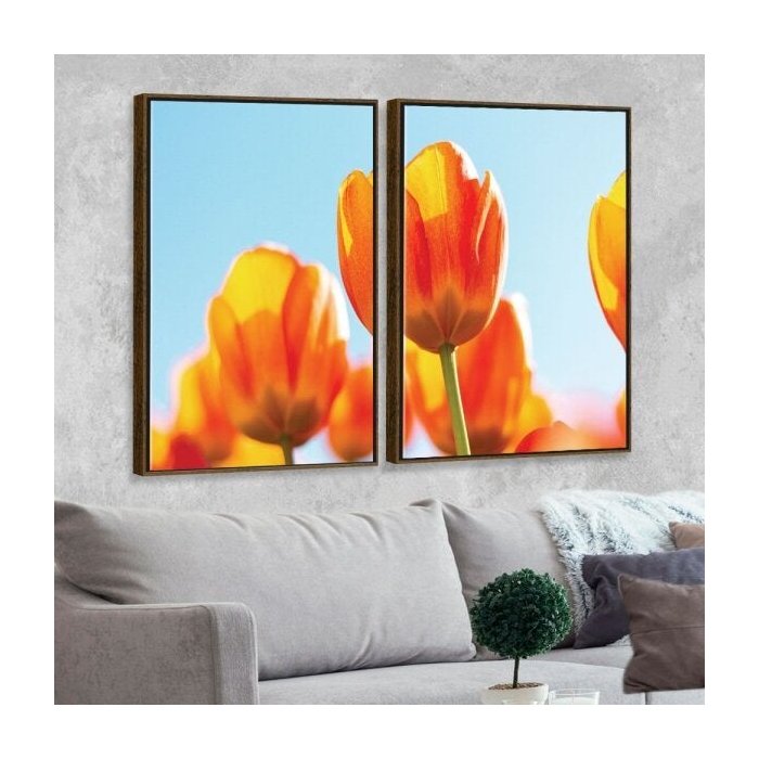 Kit 2 Telas Canvas com Moldura Flor Tulipa Madeira - Médio -
