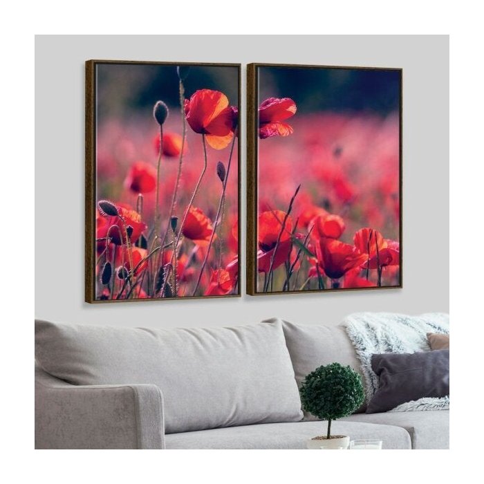 Kit 2 Telas Canvas com Moldura Flores Vermelhas Madeira - Grande Madeira