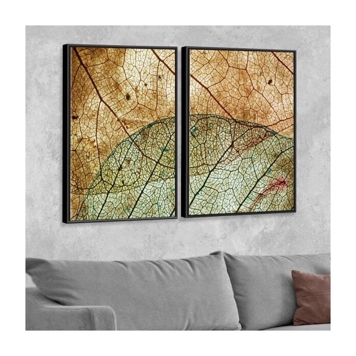 Kit 2 Telas Canvas com Moldura Mulher Folhas Geométrica Preto - Grande -