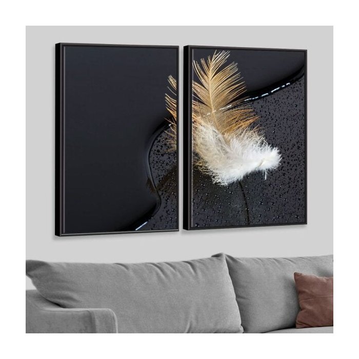 Kit 2 Telas Canvas com Moldura Pena Preto - Médio