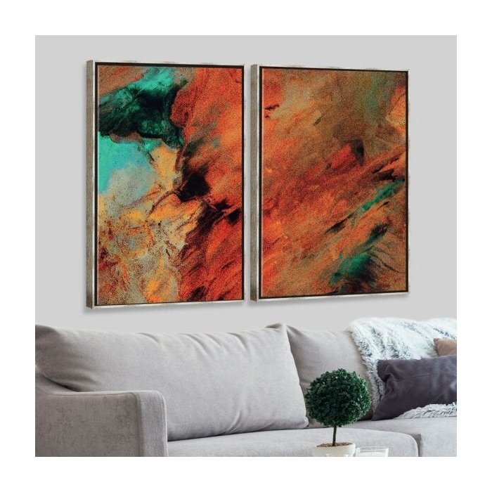 Kit 2 Telas Canvas com Moldura Pintura Abstrata com Brilho Metalizado - Médio
