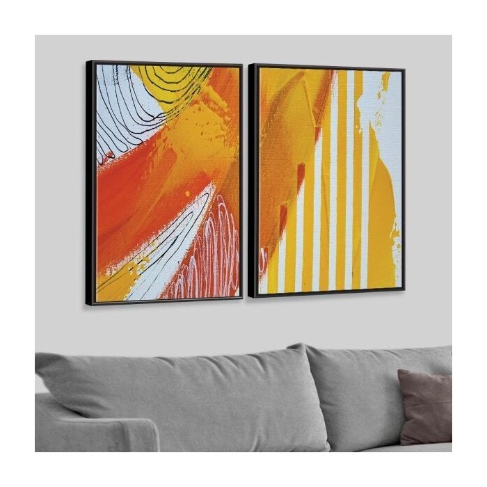 Kit 2 Telas Canvas com Moldura Pintura Abstrata Preto - Grande -