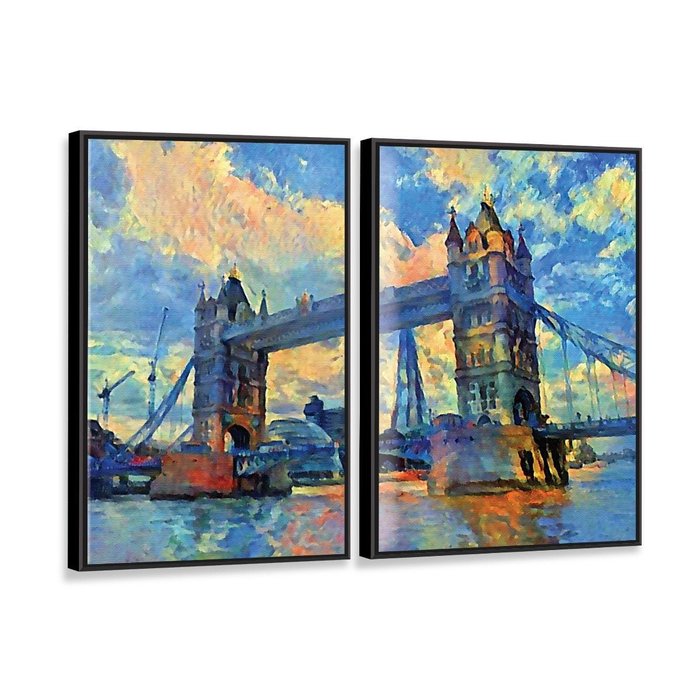Kit 2 Telas Canvas com Moldura Pintura London Bridge Preto - Grande Preto