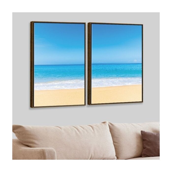 Kit 2 Telas Canvas com Moldura Praia Madeira - Médio