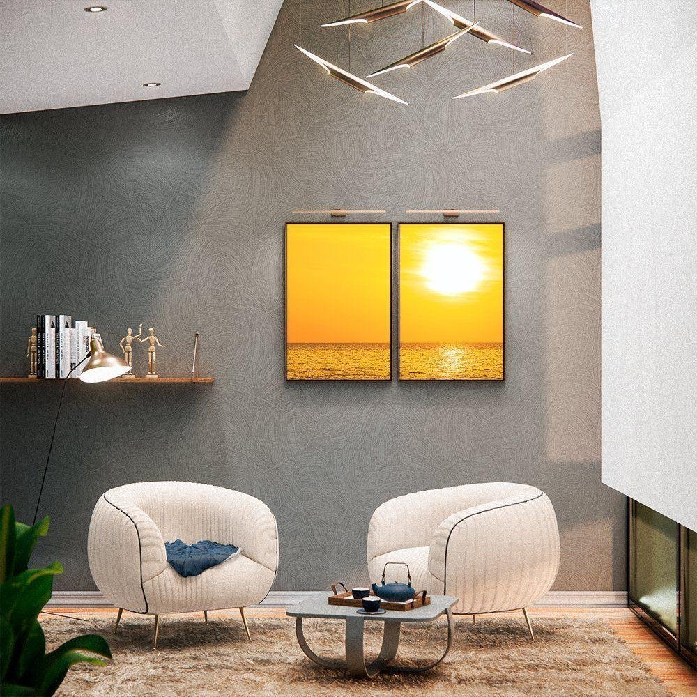 Kit 2 Telas Canvas com Moldura Sol e Mar Madeira - Grande -