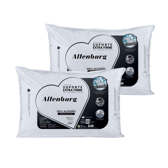Kit 2 Travesseiros Altenburg Suporte Extra Firme Percal 180 Fios