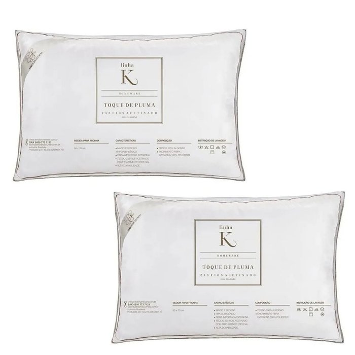 Kit 2 Travesseiros Toque de Pluma Linha K Kacyumara
