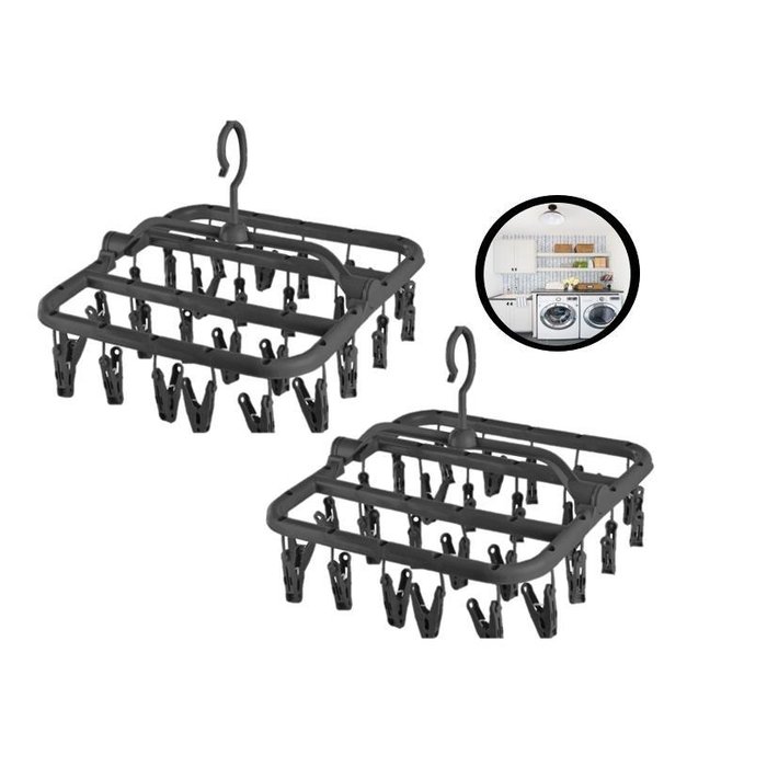 Kit 2 Varal Roupa Íntima 26 Prendedor - Calcinha,meia,cueca Preto