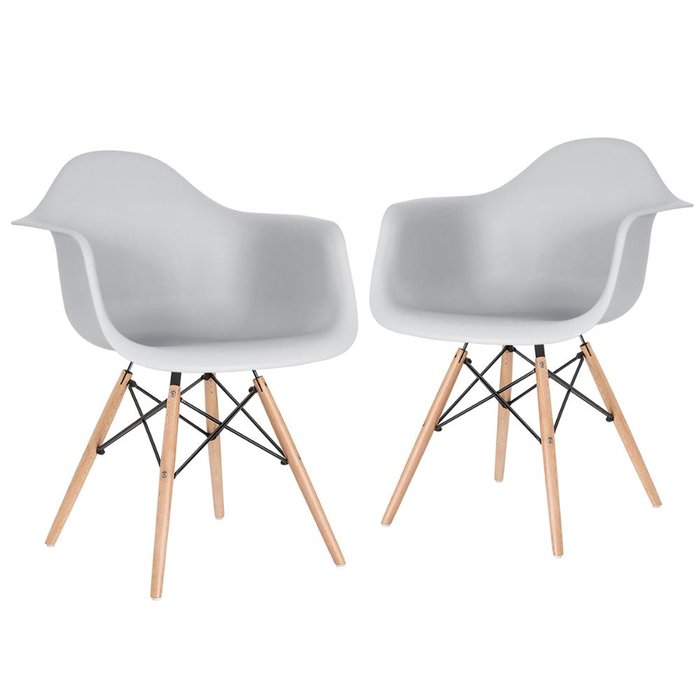 KIT - 2 x cadeiras Charles Eames Eiffel DAW com braços - Base de madeira clara - Cinza claro Multicolorido