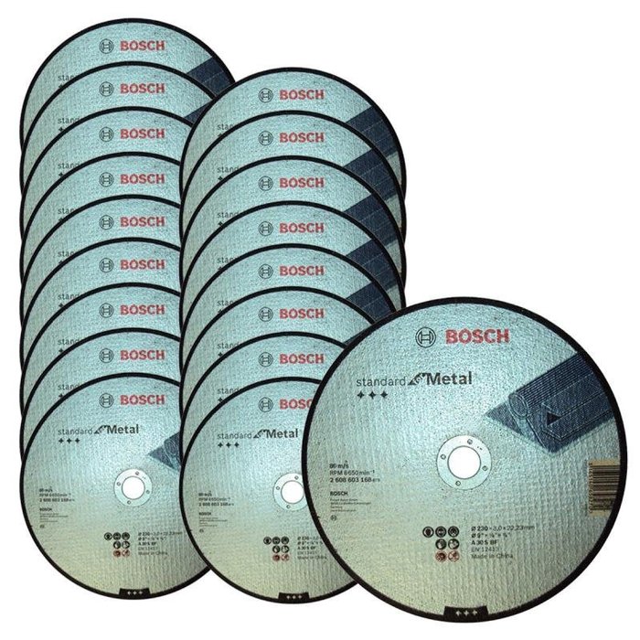 Kit 20 Discos de Corte Metal 9 POL 2 Telas Furo 7/8 POL Standard BOSCH