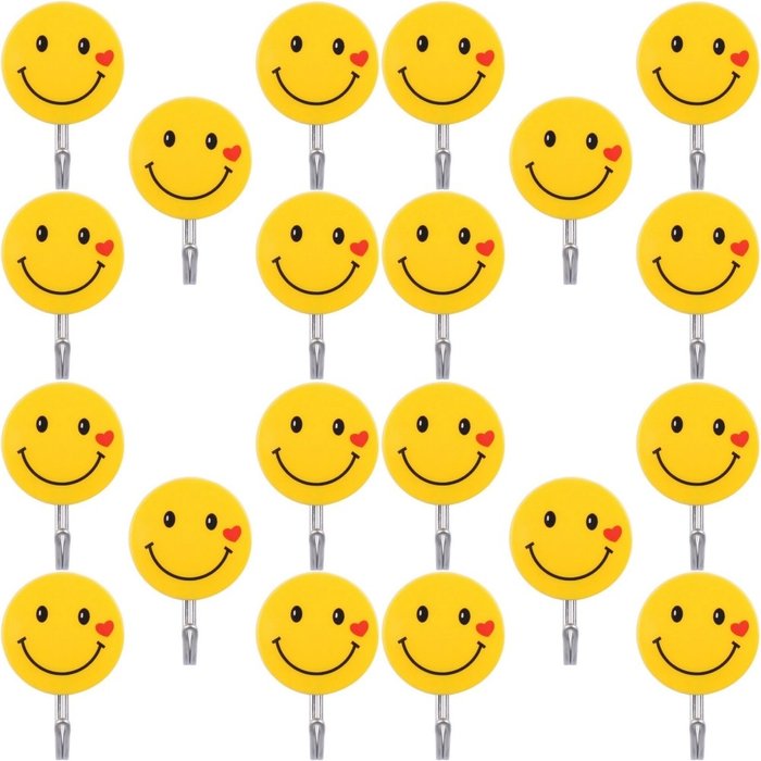 Kit 20 Ganchos Autoadesivo Para Parede Emoji Carinha Smile