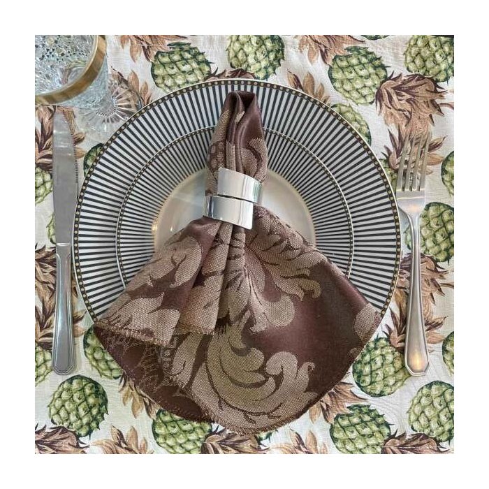 O guardanapo em tecido Jacquard tem uma linda estampa em medalhão e pontas arredondadas. Item fino que traz charme para a hora das refeições.