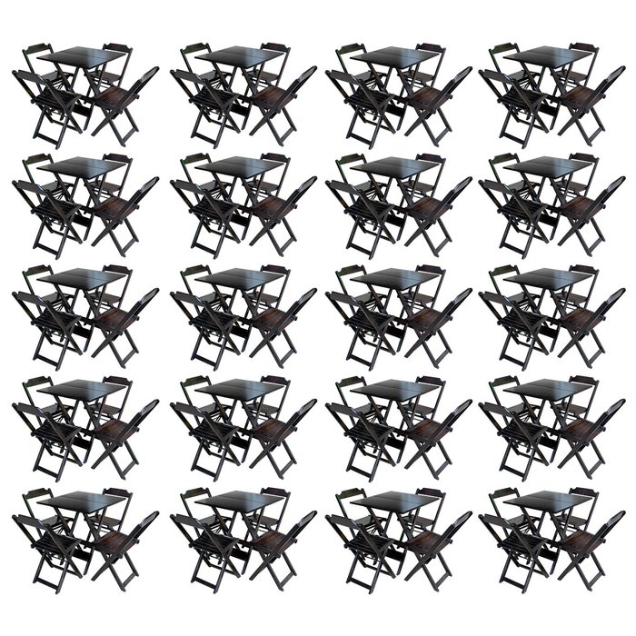 Kit 20 Jogos de Mesa com 4 Cadeiras de Madeira Dobrável 60x60 Ideal para Bar e Restaurante - Tabaco é ideal para bares, restaurantes, estabelecimentos, áreas de lazer e tambem para sua casa. Feito em madeira maciça, tornando resistentes e duráveis. Seu design permite que seja encaixado em qualquer ambiente, trazendo um toque a mais para seu estabelecimento. Além de sua durabilidade, o que lhe trará conforto para servir seus clientes. Por ser dobrável torna-se mais fácil guardar, manusear e limpar o produto. Atenção: EVITE USAR PRODUTOS ABRASIVOS e QUíMICOS para LIMPEZA DO PRODUTO, aconselha-se o uso de pano umedecido para melhor conservação; mantenha o produto fora de chuva e sol constantes MESA Cor: Tabaco Modelo: Dobrável Dimensões: Altura 76cm | Largura 70cm | Profundidade 70cm CADEIRA Cor: Tabaco Modelo: Dobrável Dimensões: Altura 80cm | Largura 45cm | Profundidade 42cm