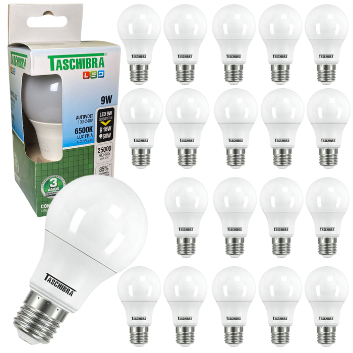 KIT 20 LAMPADA BULBO TASCHIBRA BF E27 9WPossuir uma boa iluminação nos espaços em que estamos influencia a maneira como nos sentimos, relaxamos, trabalhamos ou estudamos. É por isso que a lâmpada da Taschibra lâmpada Led Tkl 60 9w 6500k branco frio Taschibra pode ser uma excelente opção se você quiser criar um ambiente agradável e funcional.
