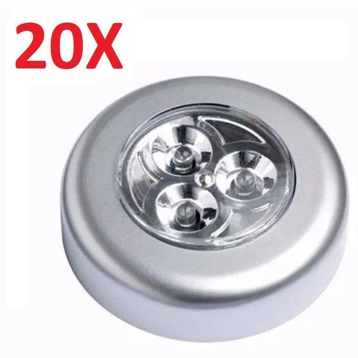 KIT 20 LUZ LED LUMINARIA ABAJUR DE TOQUE AUTOCOLANTE SEM FIO