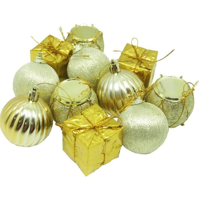 CONTEÚDO DA EMBALAGEM:2 Kit Com 11 Pingentes Dourados 5cm Para Àrvore De Natal;