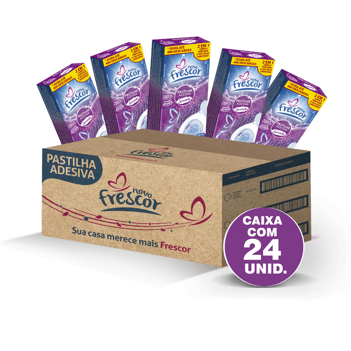 A Pastilha Adesiva Novo Frescor se dissolve lentamente a cada descarga, deixando um Novo Frescor em seu ambiente.
