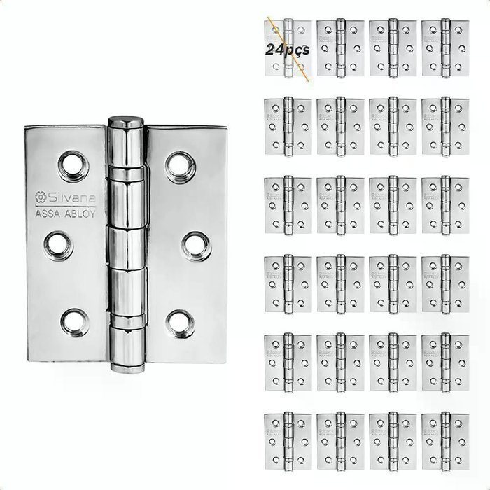Kit 24 Dobradiças 882r Ss201 Rolamento - 3x2,5" Inox Polido Inox Polido