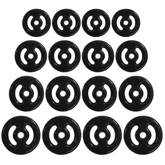 O kit com 24 kg com 16 anilhas emborrachadas PVC, é bem prático e completo.