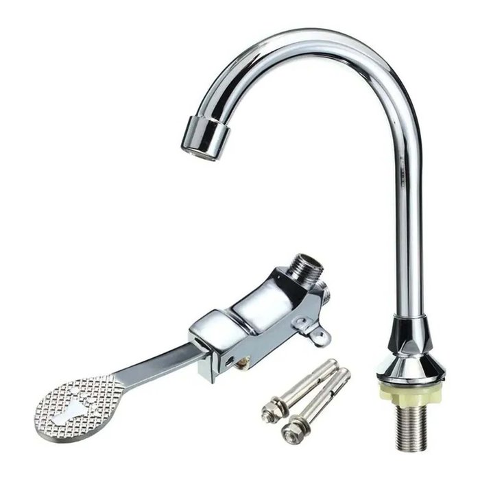 Kit 25 Unid. Torneira Valvula Pedal Acionamento Pes sem Maos Pia Hospital Laboratorio Medico Banheir Prata