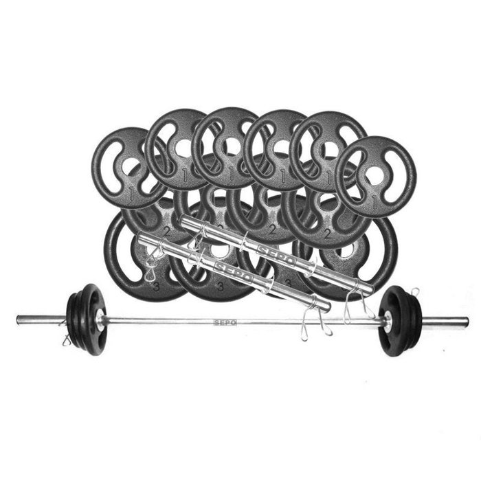 Kit 26 Kg Anilhas e Barras de Supino e Halteres