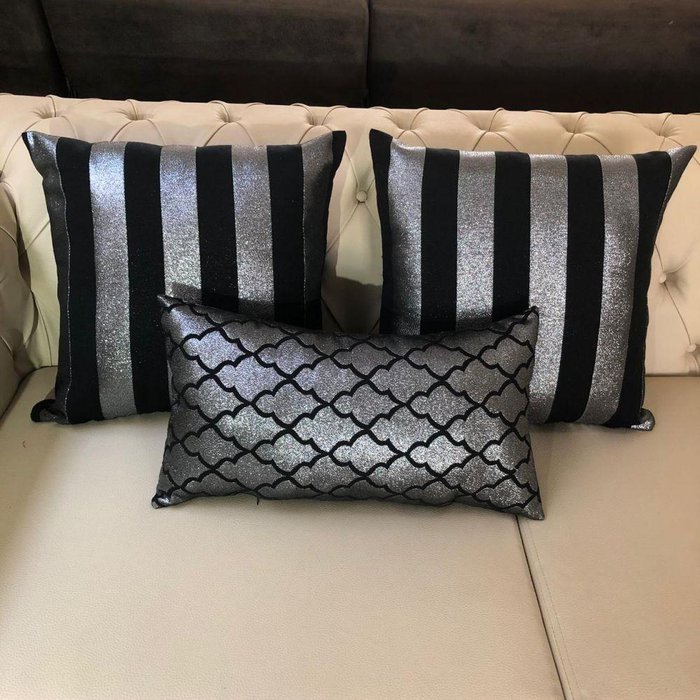 Kit 3 Almofadas Composê Preto e Prata Listrado e Geométrico