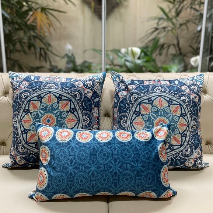| Modelo | Kit 3 Almofadas Composê Veludo Mescla Mandala Azul |