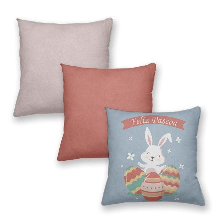 Kit 3 Almofadas Decorativas Own Feliz Páscoa Coelho Alegre