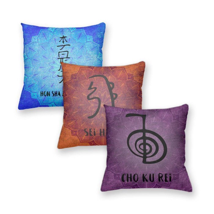 Kit 3 Almofadas Decorativas Own Símbolos Reiki - 45x45 cm Tecido Confortável -