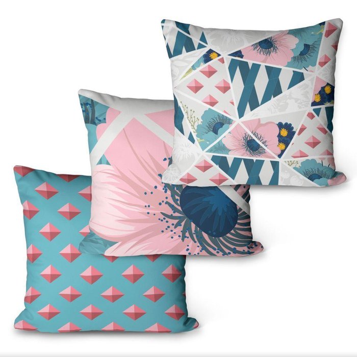 Kit 3 Almofadas Flores Geometricas 45x45cm -