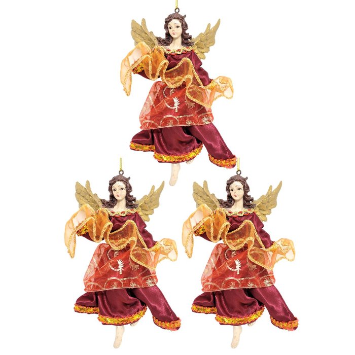 Kit 3 Anjos Pendente Resina Natal Vinho com Dourado 15cm - Master Christmas