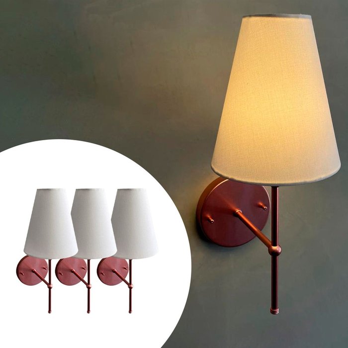 Kit 3 Arandelas de Parede Clássico Rose Gold com Cúpula Ref 05 para Sala, Corredor, Quarto e Cama