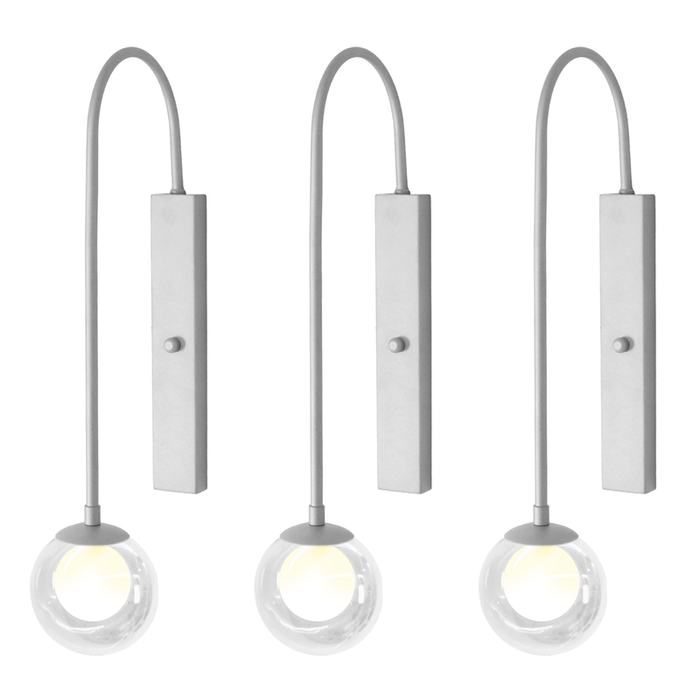 Kit 3 Arandelas Parede Globo Duplo Vidro Retangular Prata