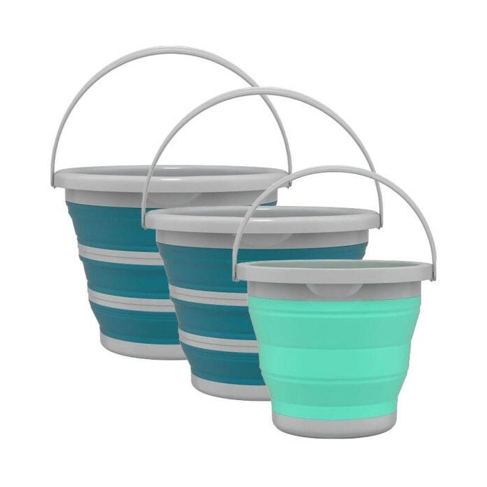 Kit 3 Baldes Retrátil de Silicone Plástico Flexível Prático Leve e Resistente de 5 e 10 Litros