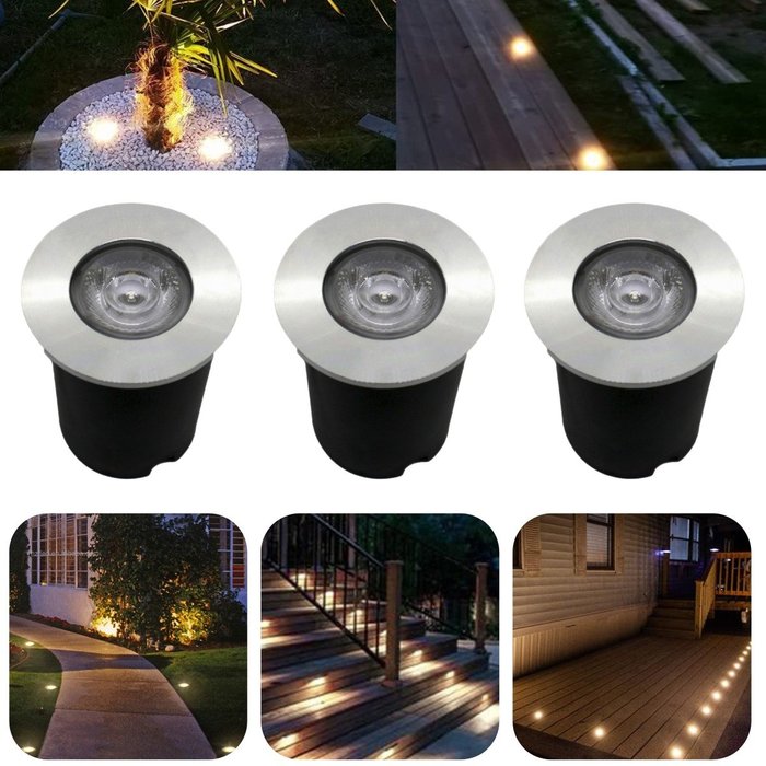 Kit 3 Balizadores Spot Led Smd em Pvc de 1w Luz Branco Frio ou Quente de Embutir em Piso Chão Solo G