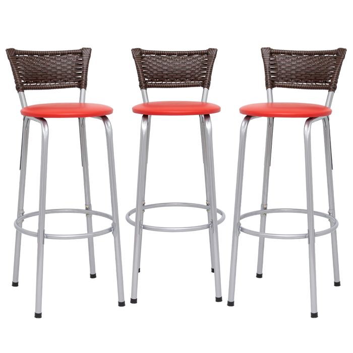 Kit 3 Bancos Alto Tamborete para Balcão Junco Argila Àrea de Lazer Ilha Bancada bar Churrasqueira Vermelho