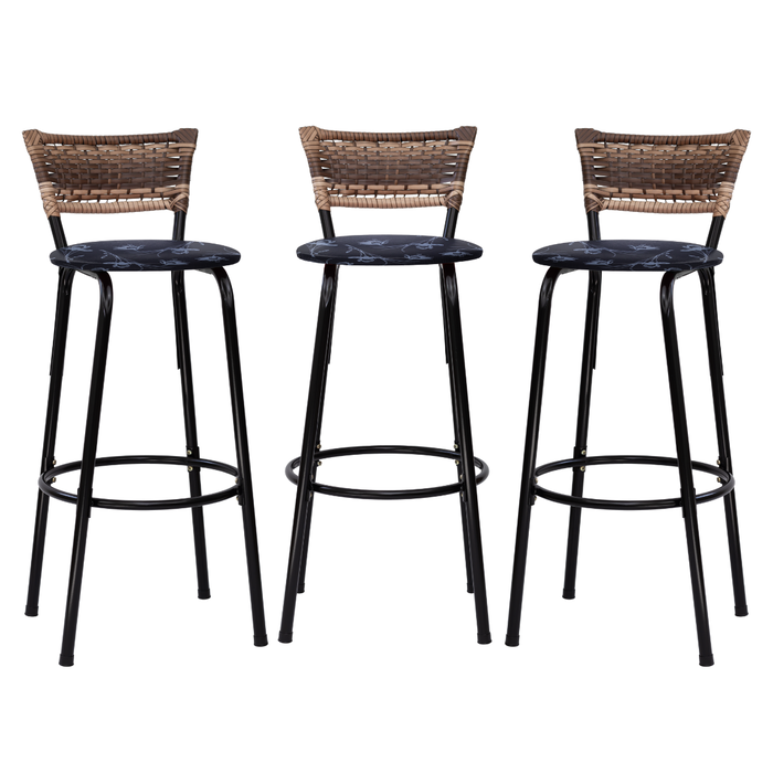 Kit 3 Bancos para Bancada Banqueta Alta Cappuccino Balcão Cozinha Bistrô Área Gourmet Churrasqueira Floral Preto