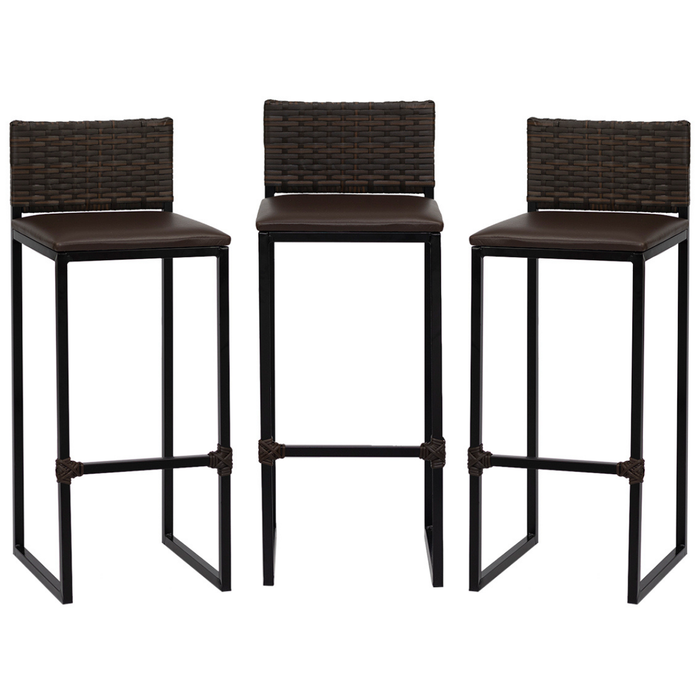 Kit 3 Bancos Quadrado Junco Argila para Bancada Alta Cozinha Área Gourmet Bistrô Piscina Bar Marrom Escuro