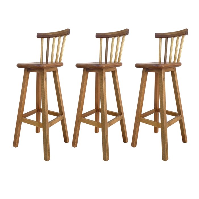 Kit 3 Banqueta Alta de Madeira com Encosto Country