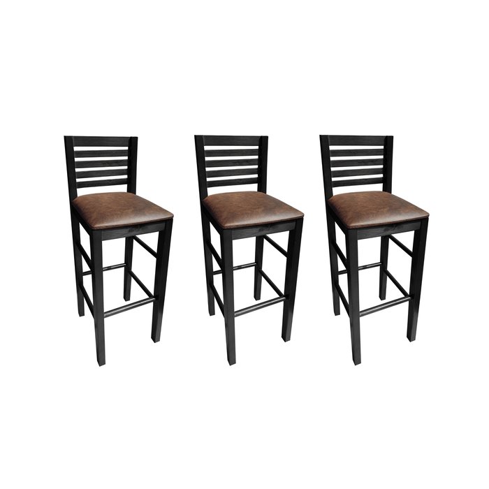 Kit 3 Banqueta Alta para Cozinha - Bar - Balcão - Preto com Estofado Marrom Mod. Laguna
