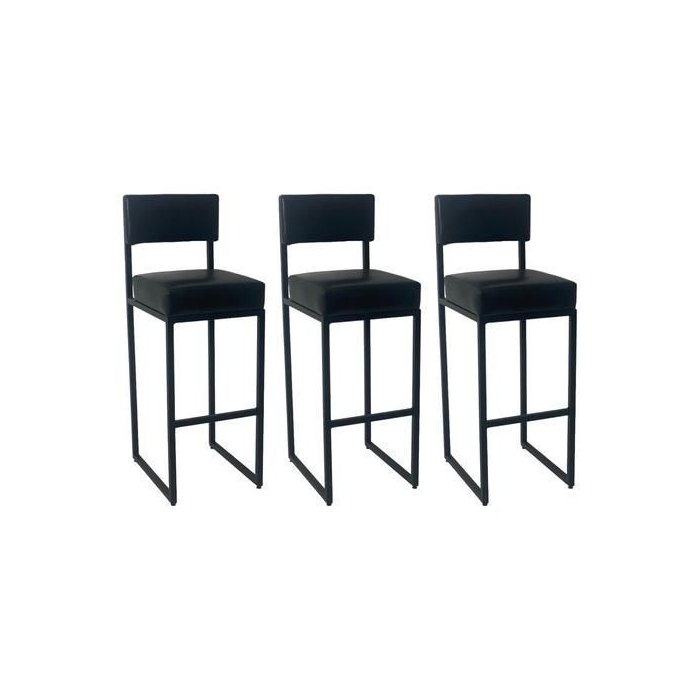 Kit 3 Banqueta Banco Estilo Industrial para Balcão Moderna Preto Preto
