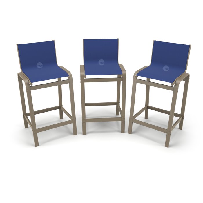 Kit 3 Banquetas Alta Bancada Alumínio Fendi Tela Azul