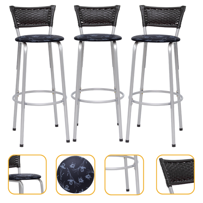 Kit 3 Banquetas Alta Banco para Balcão Junco Preto Àrea Gourmet Ilha Bancada bares Churrasqueira Floral Preto