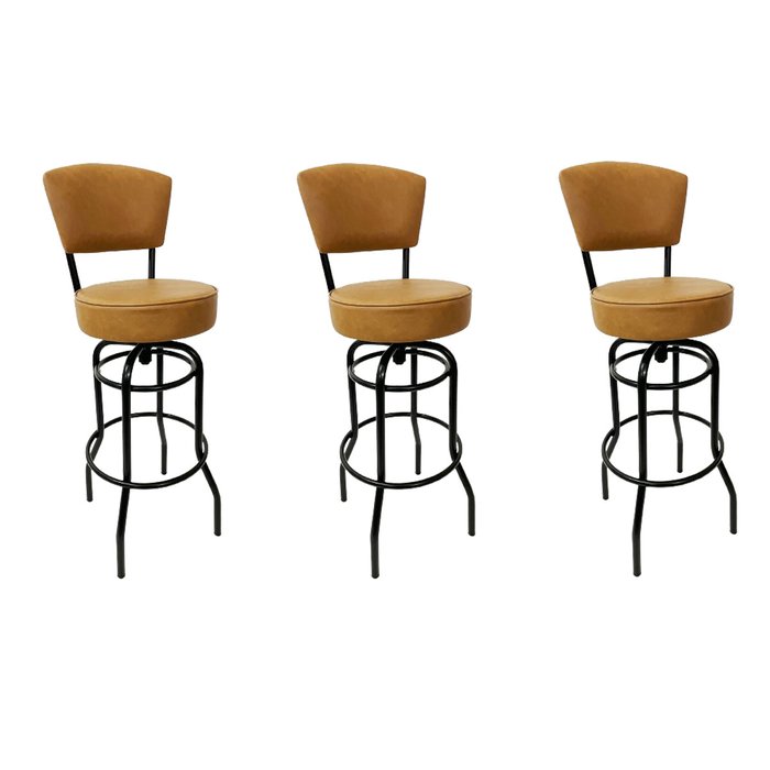 Kit 3 Banquetas Alta Bar Giratória com Encosto cor Preta Assento cor caramelo Confortável Poltronas