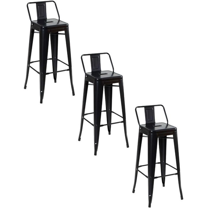 Kit 3 Banquetas Alta Oficial Iron Tolix com Encosto Preto Preto