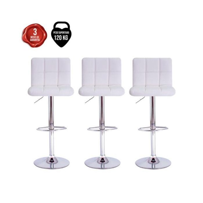 Kit 3 Banquetas Alta Para Bar Balcão Bancada Cozinha Americana Giratória Gomos Branca