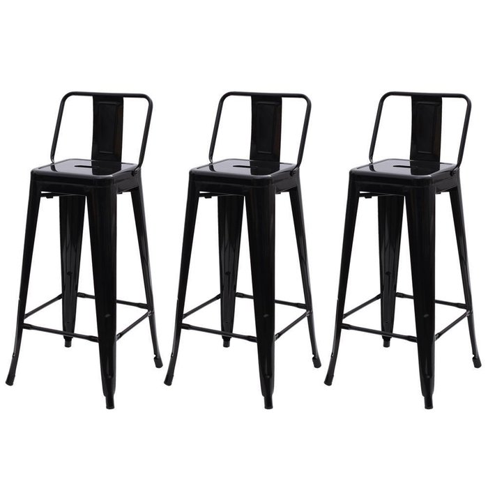Kit 3 Banquetas Altas Com Encosto Tolix Iron Preto Preto
