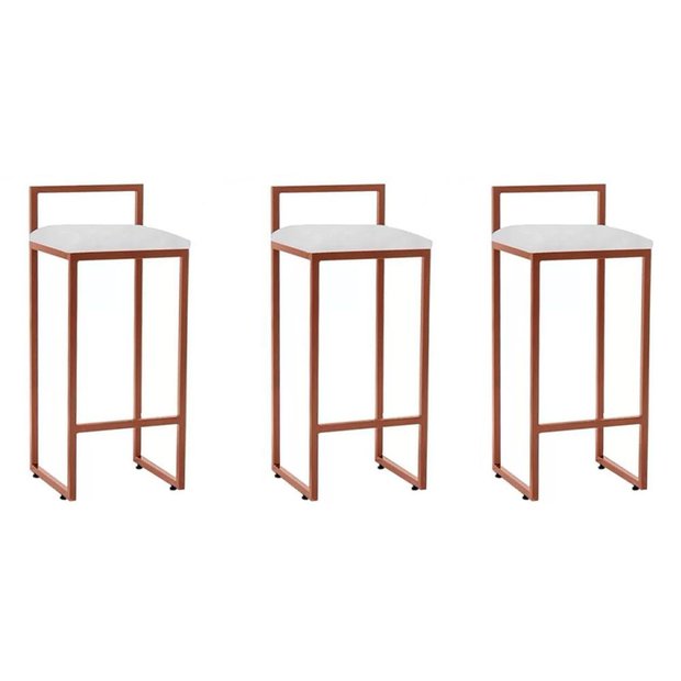 Kit 3 Banquetas Altas Industriais Em Aço Dori Cobre Assento Suede Branco