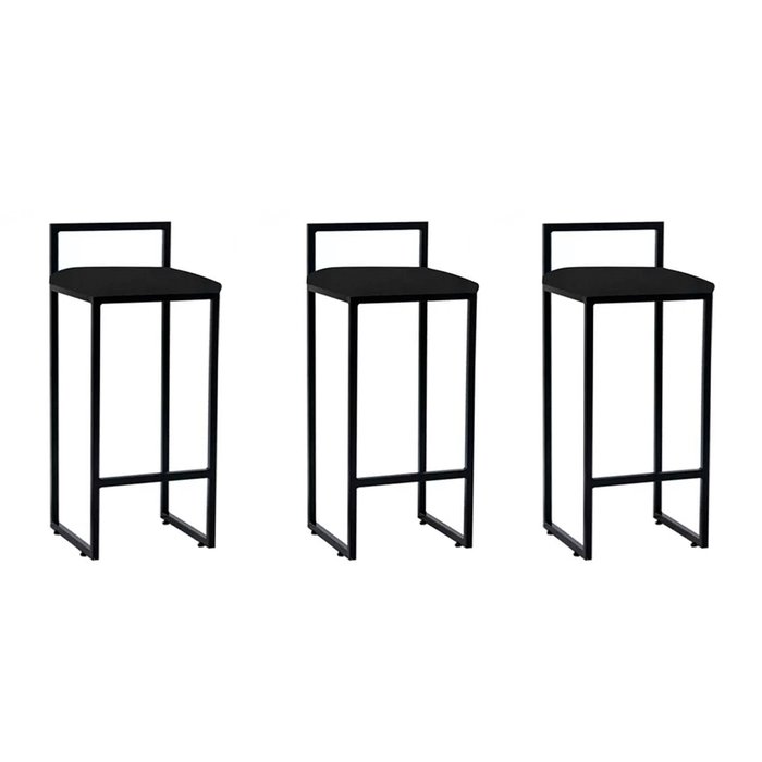 Kit 3 Banquetas Altas Industriais Em Aço Dori Preto Assento Suede Preto